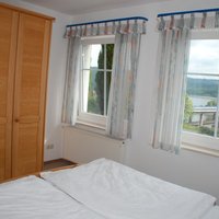 45 m², max. 4 Personen, 1 Schlafraum, 1 Wohn-/Schlafraum mit Doppelschlafcouch, Küchenzeile, Du/WC, Sat-TV, WLAN, Erdgeschoss, Terrasse mit Seeblick